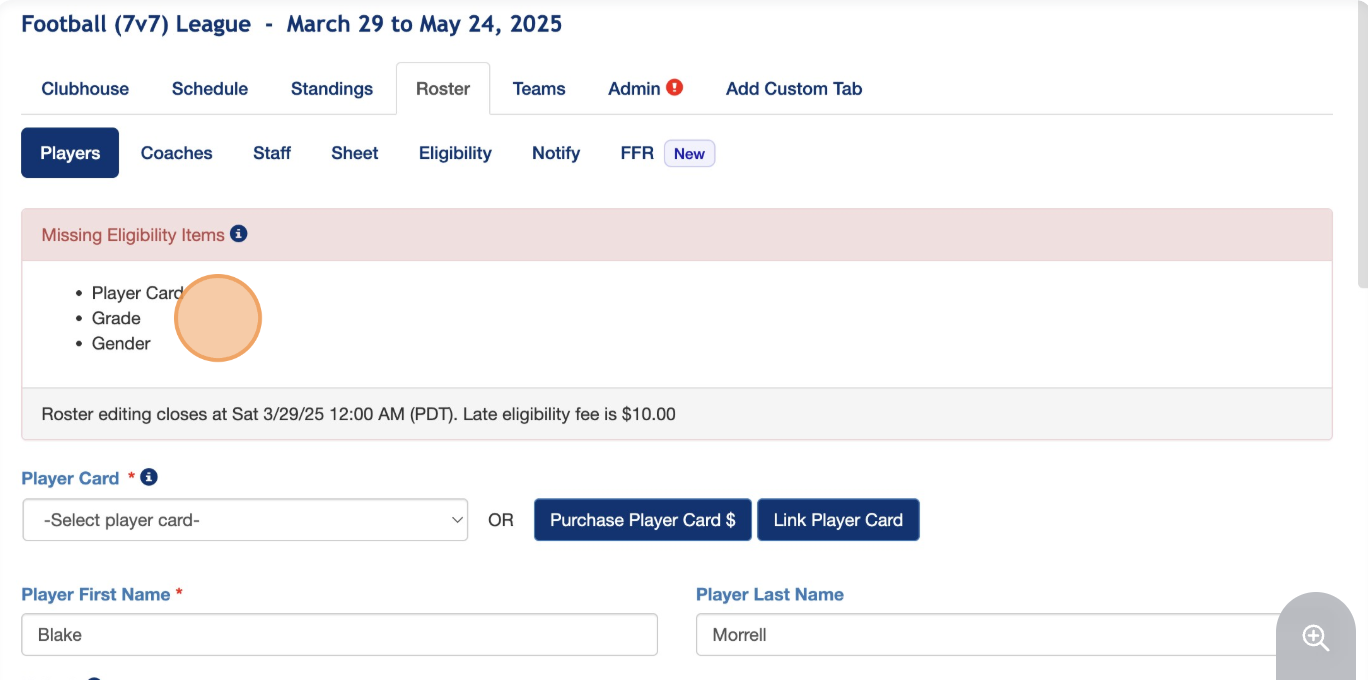 14. This will open up the individual's roster entry so that you can see what they're missing.
